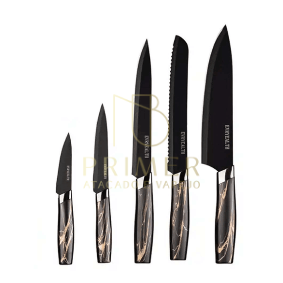 Este conjunto de facas é ideal para cortar frutas, legumes e carne. As lâminas são feitas de aço inoxidável de alta qualidade com um revestimento antiaderente, o que facilita a limpeza