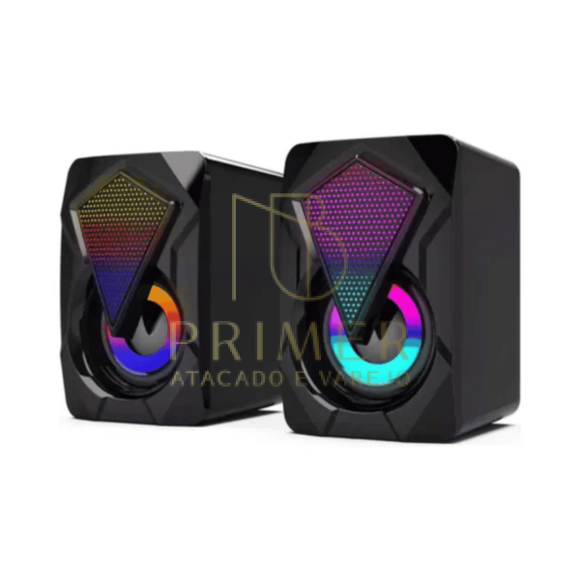 A Caixa de Som 2.0 para computador ou dispositivos com saída P2 (como notebooks, smartphones tablets, tvs entre outros) oferece alto-falantes de alta qualidade e Potência RMS de 6W, com som nítido e preciso, acompanhados da iluminação Rainbow, que acrescenta mais estilo ao seu setup.