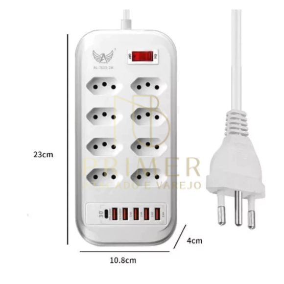 1 Extensão Altomex AL-7606 com 6 tomadas e 6 portas USB