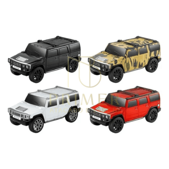 A Caixa de Som Bluetooth Jeep Hummer da Altomex une qualidade sonora e design exclusivo em forma de miniatura de carro, transformando qualquer ambiente em um espaço mais estiloso e divertido.