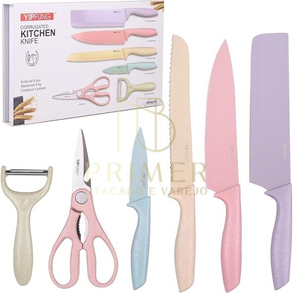 KIT FACA DE COZINHA COLORIDA 6 PCS